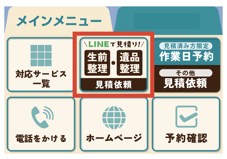 メインメニューを開き、『生前整理・遺品整理 見積依頼』を選択